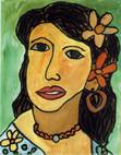 "CINCA PANNA" steht auf ihrem Arm, Blumen bedecken ihr Haar und